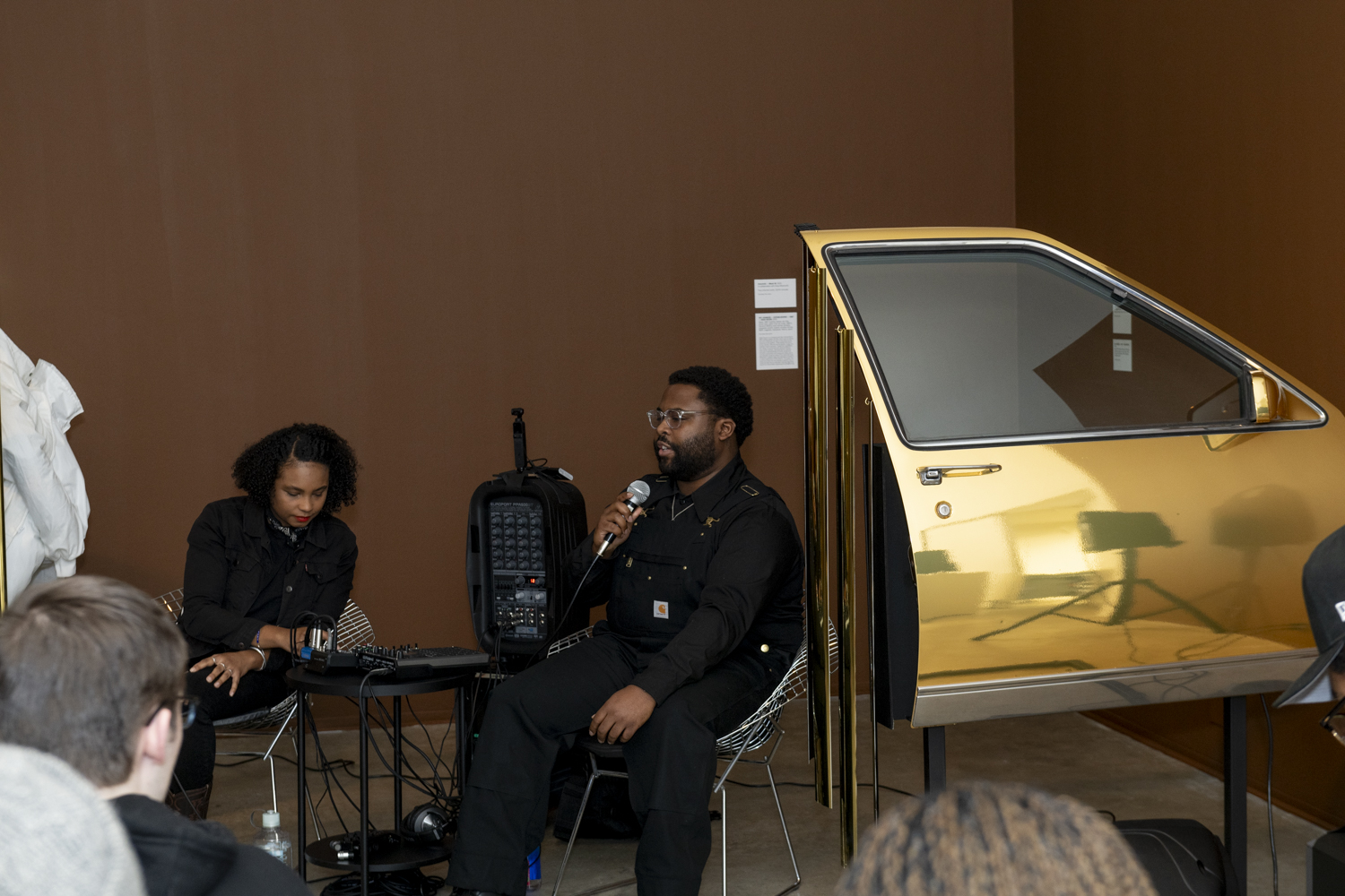 Materials: Wood, plastic crates, Black Bottom Detroit soil, brass, hardware, seeds, paper, speakers, mixer, drum machine, audio cables, sound composition